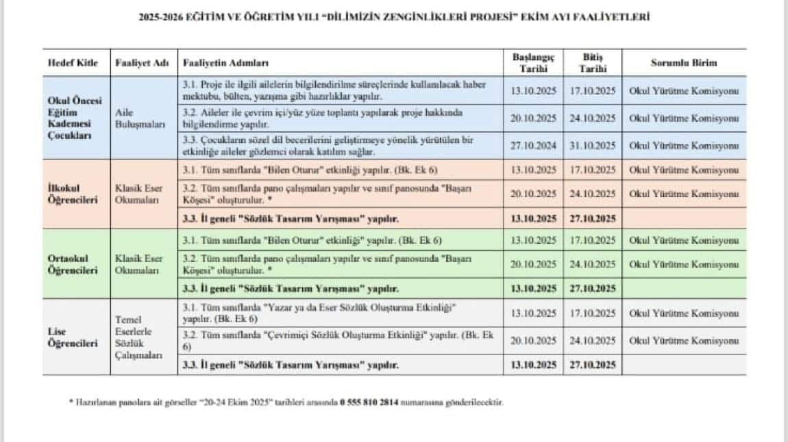 Dilimizin Zenginlikleri Ekim Ayı Proğramı.